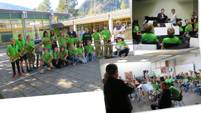 Für eine gestiftete Trompete bedankten sich die Schüler und Schülerinnen der Bläserklasse der Mittelschule Pfronten mit einem kleinen Konzert. Herr Gafke von der Firmengruppe Buffet war extra aus Geretsried angereist, um die Trompete persönlich zu überreichen. Diese hatte die jetzige Bläserklasse 6 bereits letztes Schuljahr beim Bayrischen Bläserklassen-Wettbewerb als Sonderpreis für eine gelungene Bühnendarstellung gewonnen.