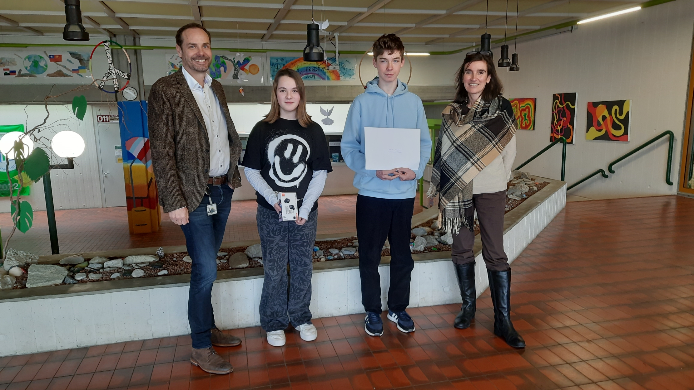 Fester Bestandteil für die bis zu 1.000 Schüler, die am Tag der Ausbildung die Firma Deckel Maho Pfronten besuchen, ist eine Tombola. Zwei Preise gingen in diesem Jahr an Schüler der Mittelschule Pfronten. Personalleiter Udo Lademann und Personalreferentin Aus-/Weiterbildung