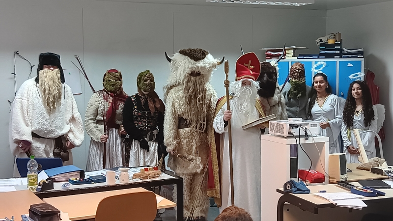 Mit Schokolade, Nüssen und einigen Ratschlägen im Gepäck besuchte der Nikolaus in Pfronten die Grund- und Mittelschüler. Begleitet wurde er von Kloasen und Berbele, die mit den Schülern in der Pause auch ein Kloasen-Treiben veranstalteten. Organisiert wurde dieser Vormittag von Schülern der 10. Klassen der Mittelschule Pfronten und dem Vertrauenslehrer Thomas Lokatis.
