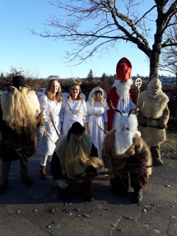 Es klingt schon ein bisschen unheimlich, wenn die Klausen durch das Schulhaus poltern. Und einige Schüler und auch Lehrer mussten sogar ein paar Rutenschläge ertragen. Doch Engel und Nikolaus haben dabei immer ein wachsames Auge auf ihre Gehilfen, dass dies auf keinen Fall ausartet.